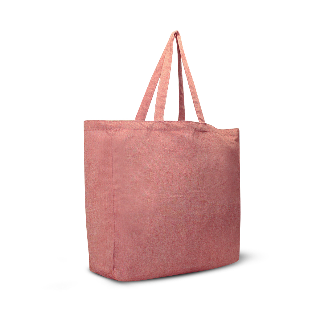 Other Details – 130 GSM recycled melange cotton bags with 1″ x 22″ self handle. Melange fabric is made of 70% recycled cotton & 30% polyester.