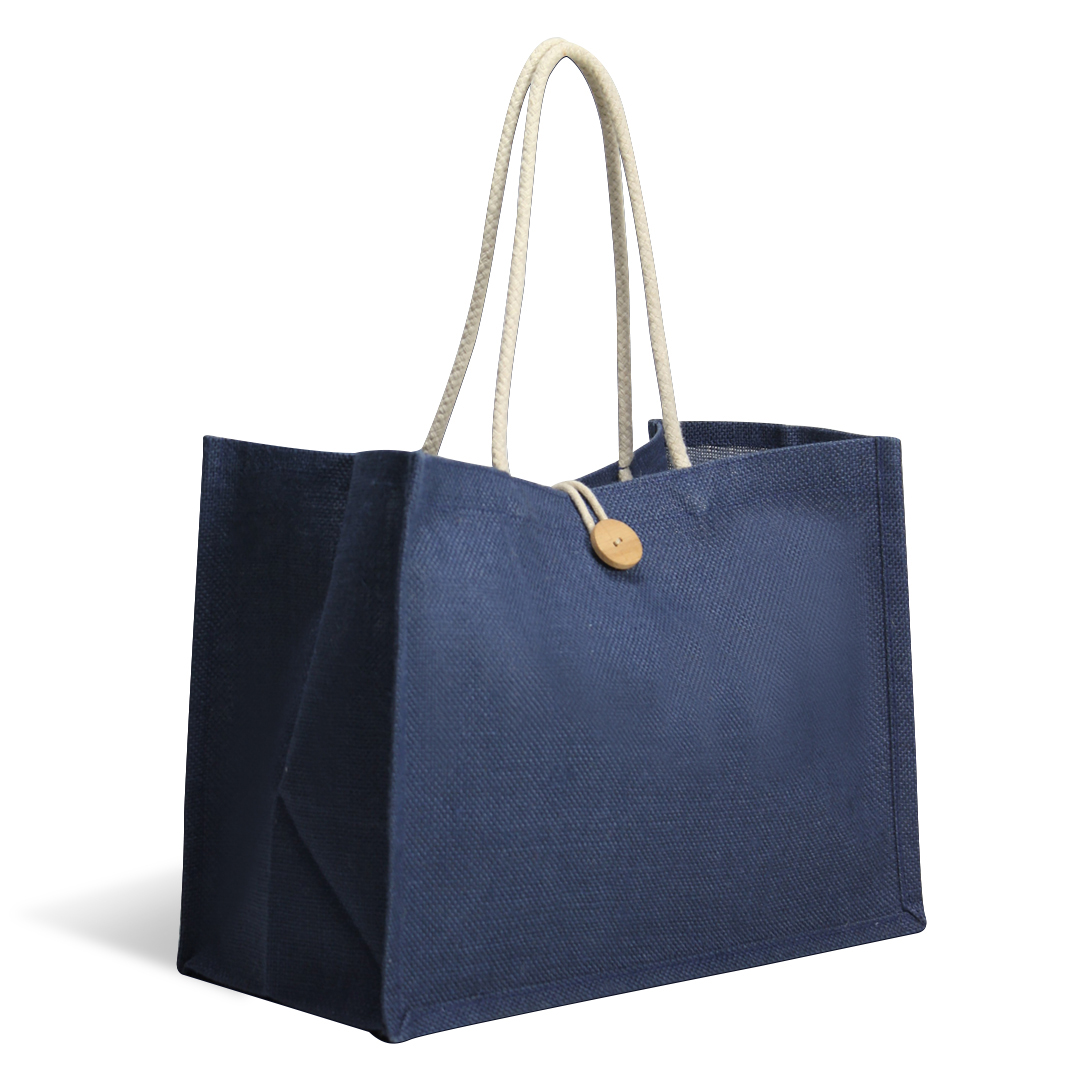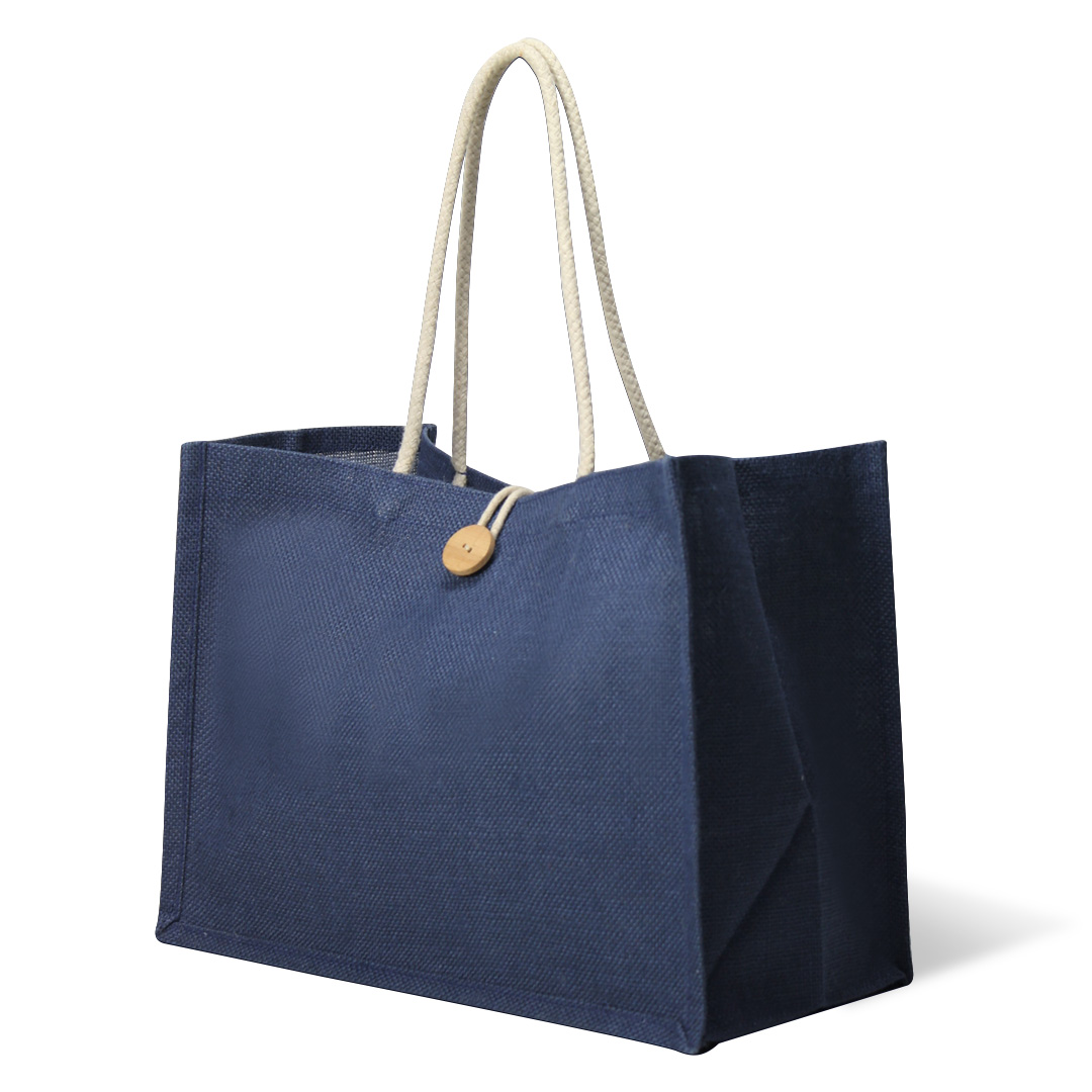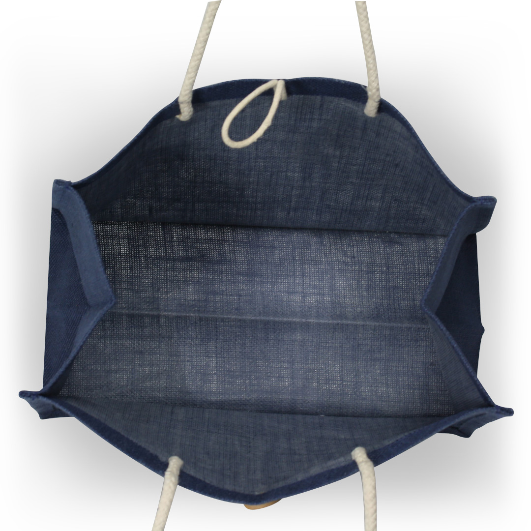 Other Details – Laminated dyed jute bag with wooden button and cotton cord closure and off-white cotton rope handles