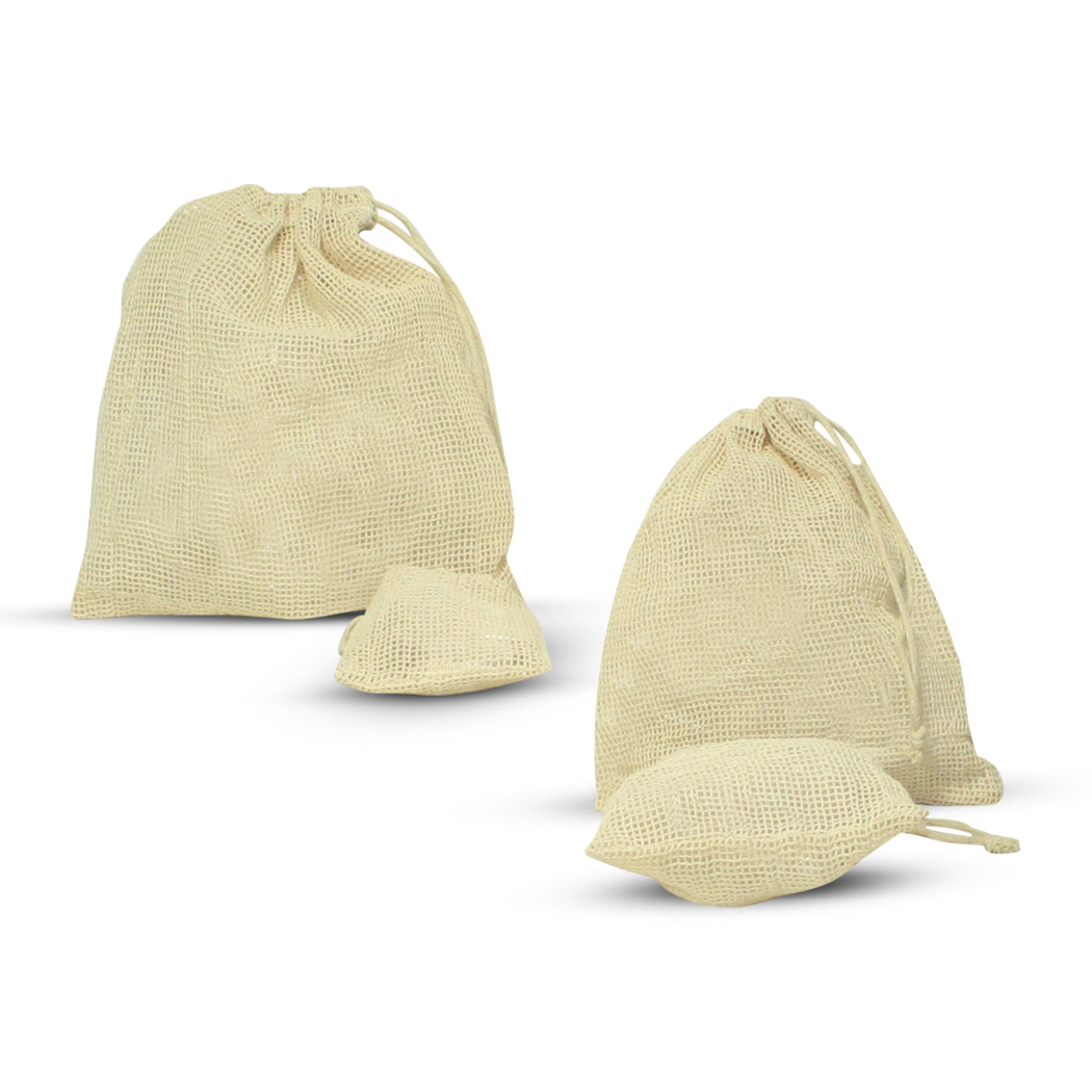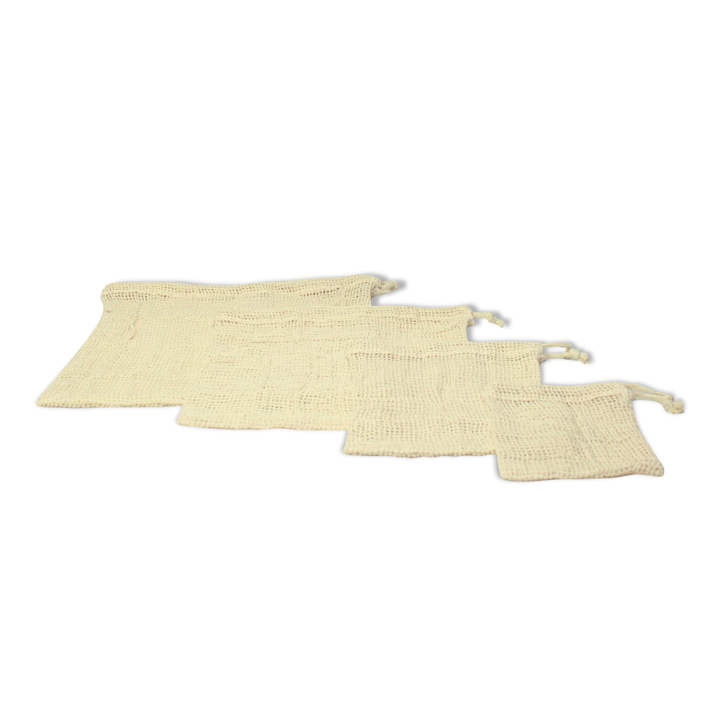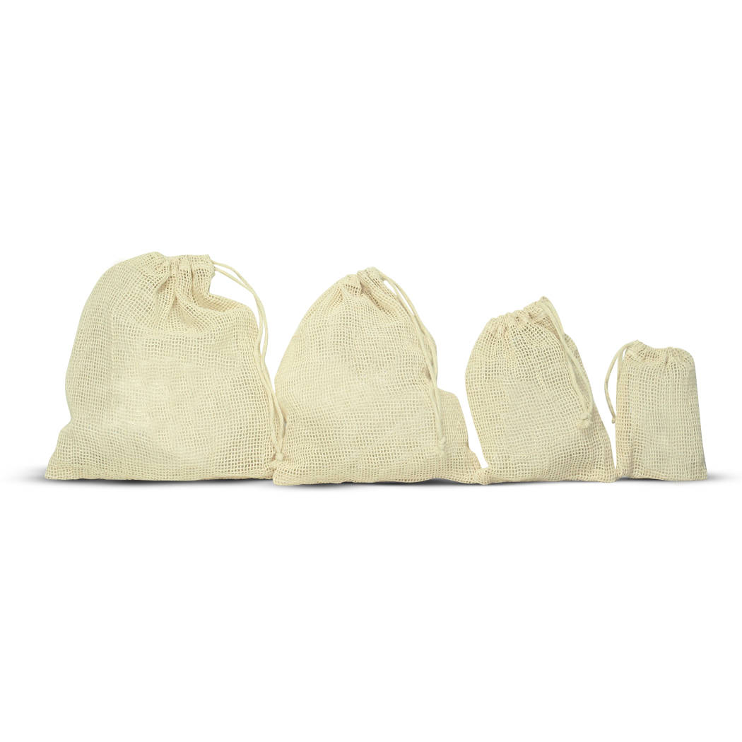 Other Details – Cotton net produce bag made of 120 GSM natural recycled cotton with cotton drawstring.