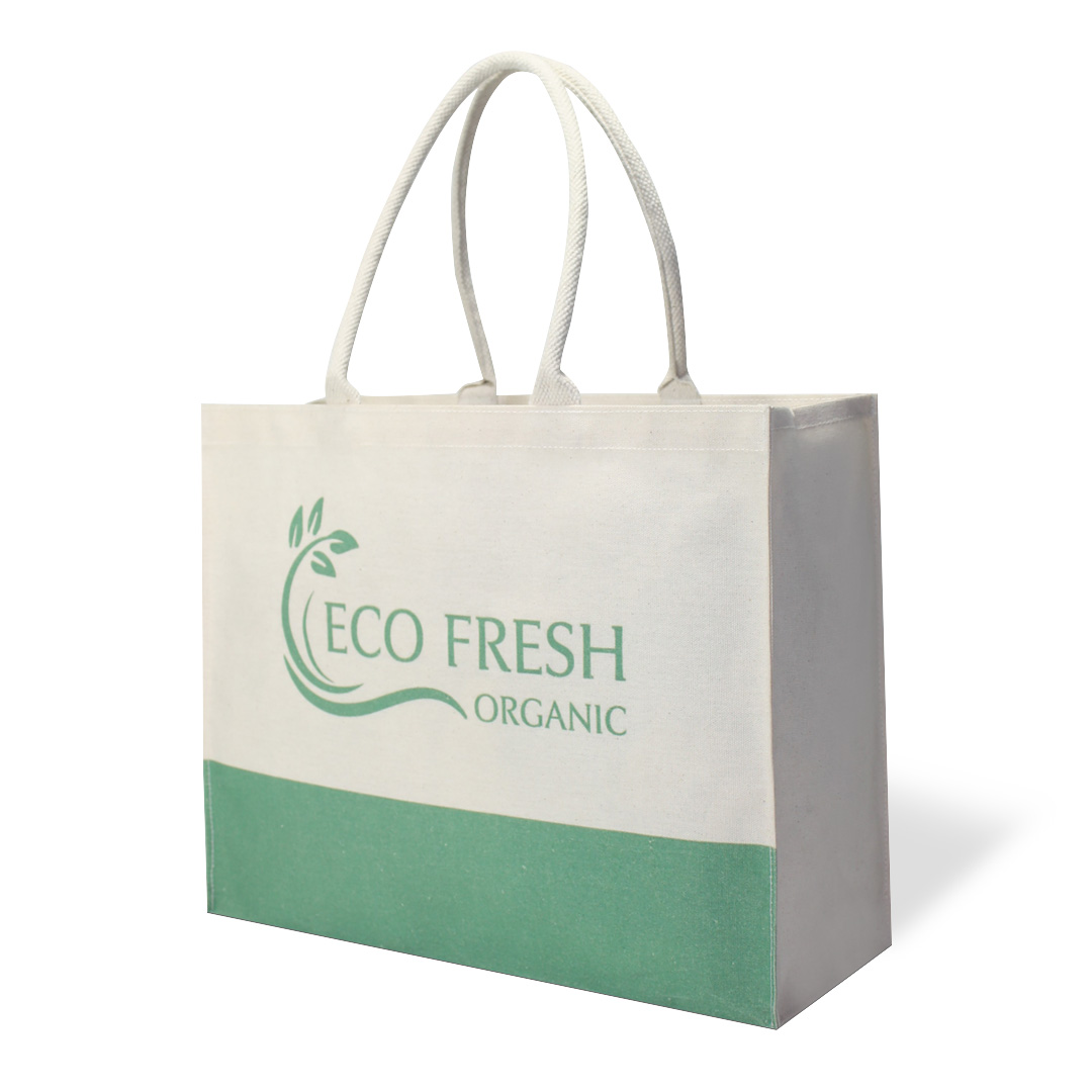 Other Details – 8 oz laminated natural canvas bag with padded cotton webbing handles