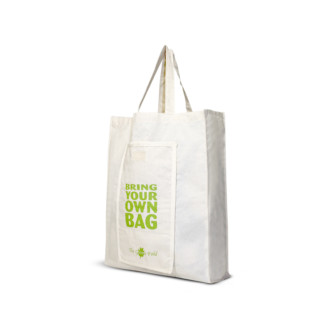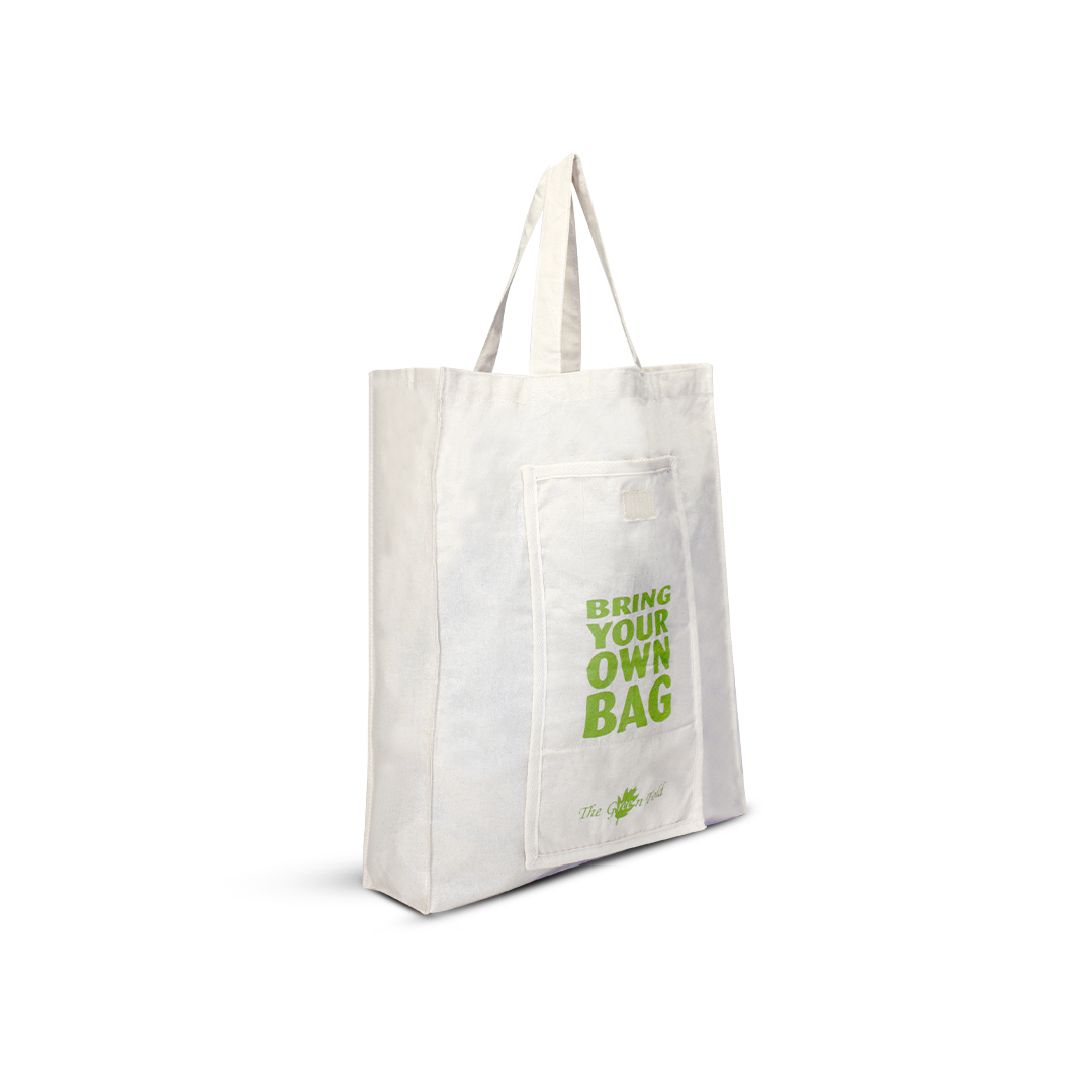Other Details – 130 GSM cotton foldable bag with self handles and pocket on one side.